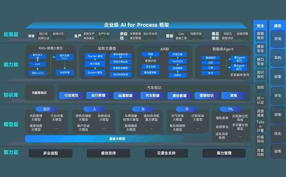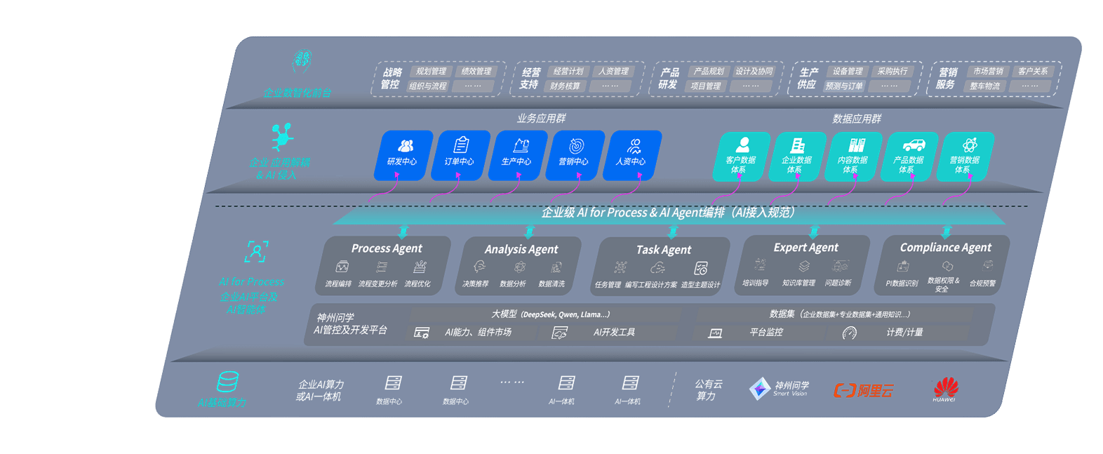 端到端的一站式AI工作空间深度融合了从企业战略规划到日常经营的全流程业务板块,,,,定向解决车企内部领域多、、部门多、、、链条长、、场景碎片化等难题,,支持车企快速构建以AI为核心的生产力写作体系,,实现任务执行与AI能力的无缝集成与交互